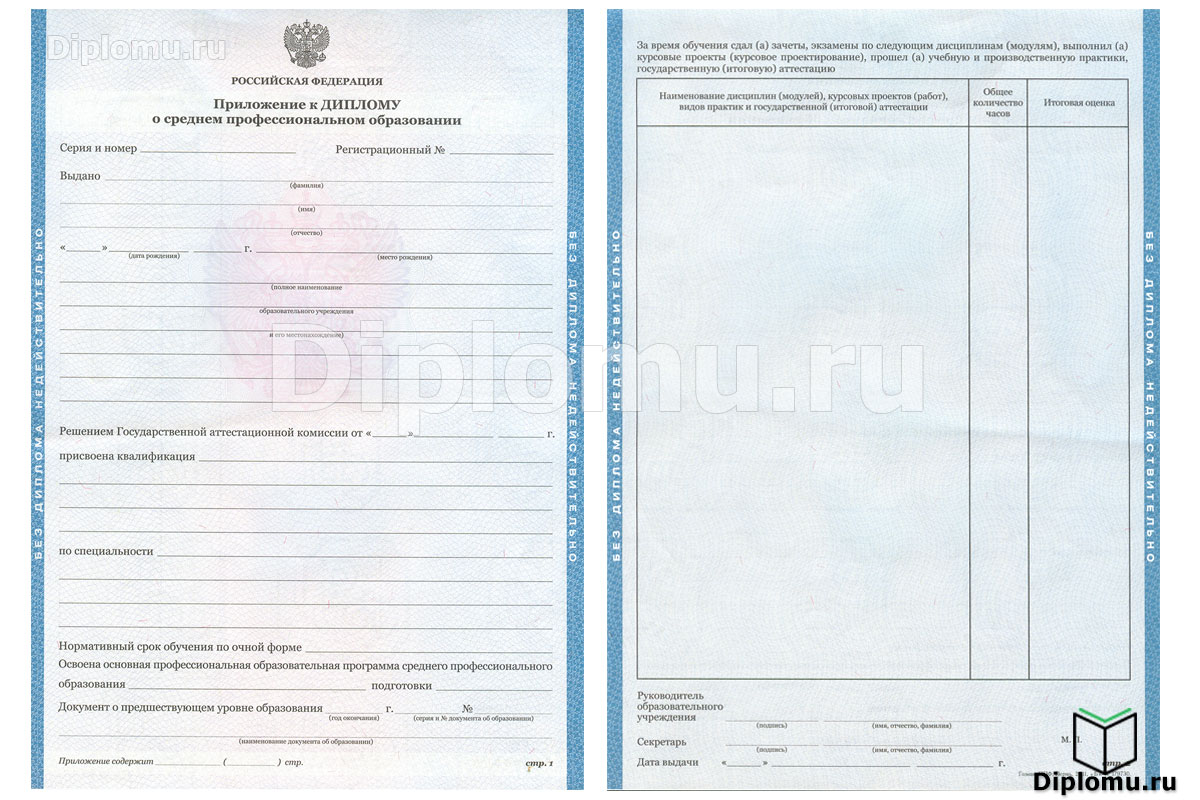 Приложение к диплому ССУЗа 2014-2025 годов при покупке отдельно; |